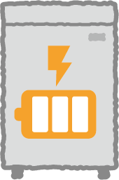 家庭用蓄電池は災害時のバックアップ電源にとどまらず、今や住まいのゼロエネルギー化を推し進めるための重要な電源装置としても、確実に認識されています。蓄電池を導入する一番のメリットは、非常時に電源として使えることの安心感です。例えば、蓄電容量7.2kWhの蓄電池がフル充電の状態であれば、電子機器を12 時間使用し続けることができます。(フル充電は3時間程度で完了します)