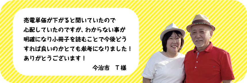自分で作った電気を自分で使うことができるようになり、家庭菜園で作った野菜をご家庭で味わって楽しむように、電気を自給自足する生活を楽しむことができます。